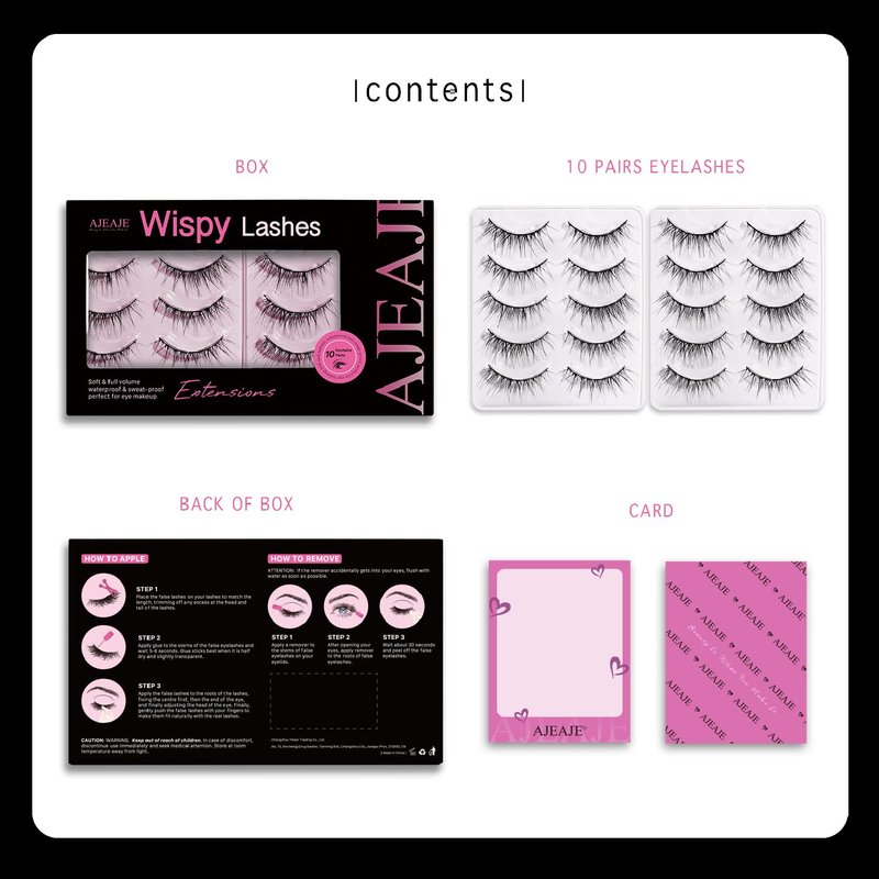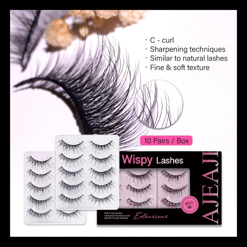 AJEAJE False Eyelashes,10 Pairs Black 3D Faux Mink Soft Natural Eyelashes,Lightweight Handmade Wispy Fluffy Cat Eye Lashes Fiber Length 11-16mm,34-35mm Lash Band Length,Suitable for All Eye Shapes