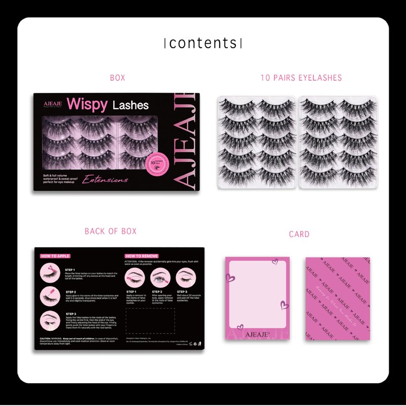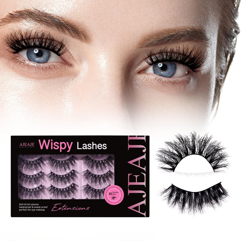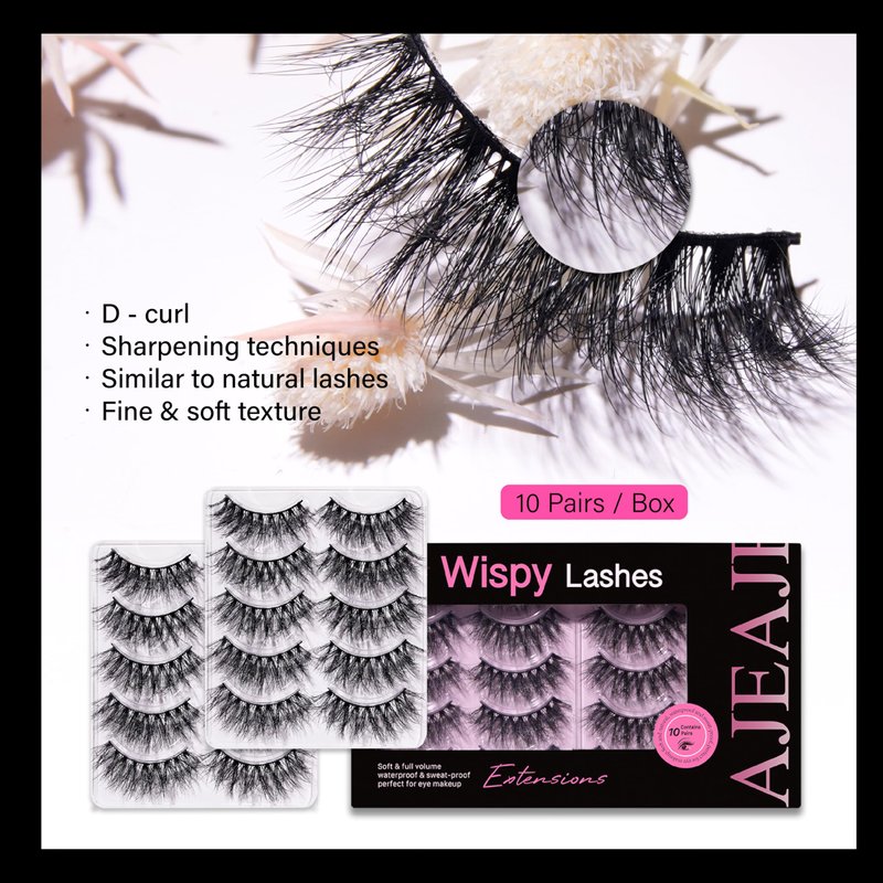 AJEAJE False Eyelashes,10 Pairs Black Natural 3D Faux Mink Soft Natural Eyelashes,Lightweight Handmade Wispy Fluffy Cat Eye Lashes Fiber Length 14-16mm,34-35mm Lash Band Length