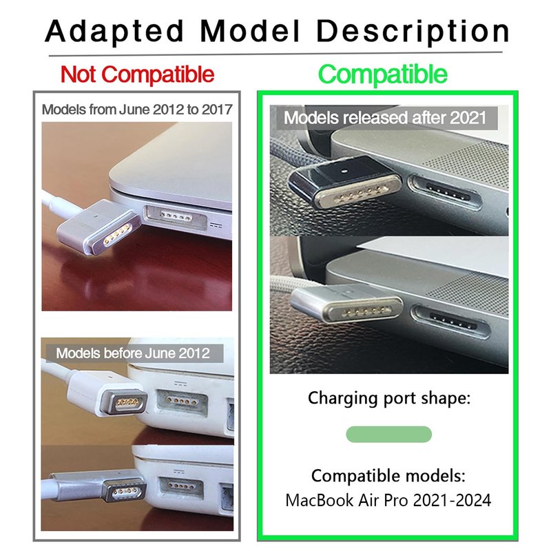 - Compatible with magnetic charging 3: MacBook air pro 2021-2024, please pay attention to the applicable model of the notebook.