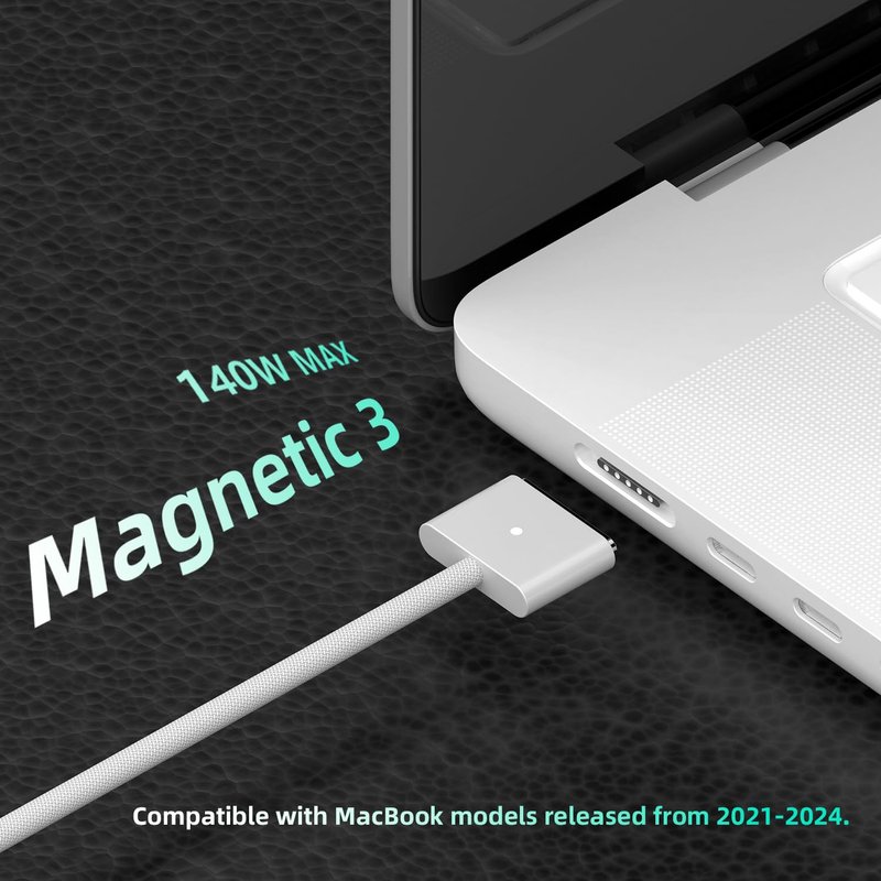 AJJ 140W USB C to Magnetic 3 Charging Cable Compatible with MacBook 2021-2024 M1 M2 M3,2M-White