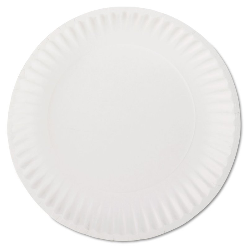 Affordable white uncoated paper plates. Lightweight design allows plates to be used for multiple purposes. Dinnerware Type: Plate; Material(s): Paper; Shape: Round; Diameter: 9".