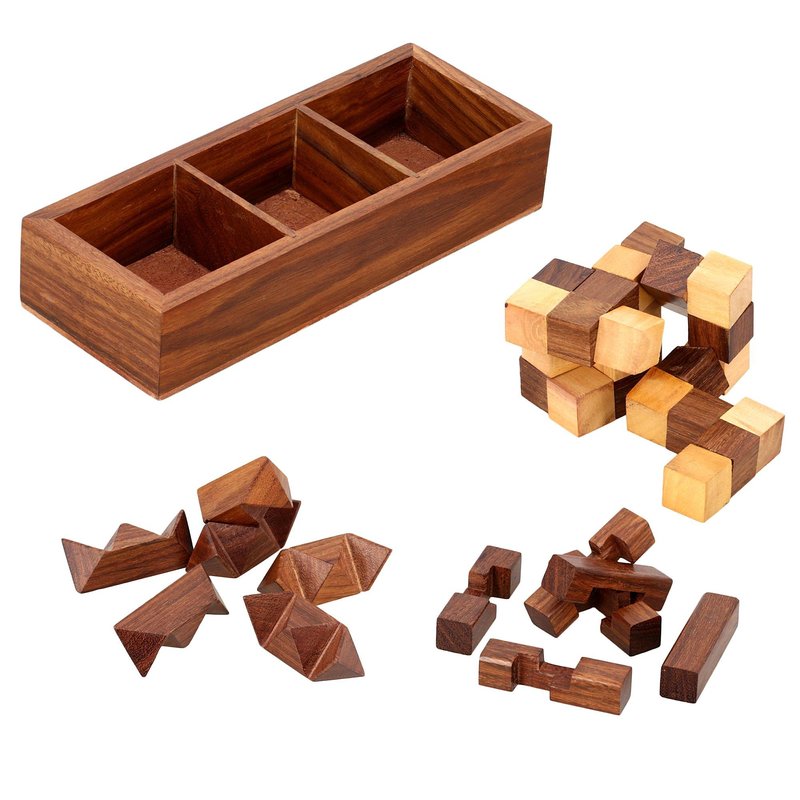 - 【FULLY HANDCRAFTED】: Each puzzle in the set is meticulously handcrafted, showcasing the skill and artistry of Indian woodworking. The attention to detail and craftsmanship ensure the durability and quality of the puzzles. This makes the set a unique and thoughtful gift for puzzle enthusiasts, showcasing the beauty of handmade wooden games.