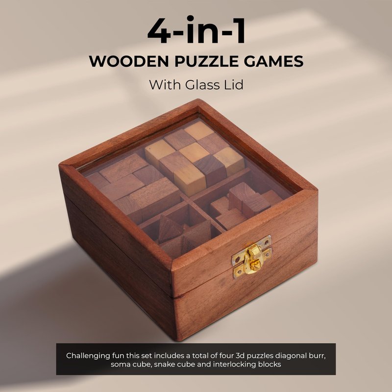 Introducing the Ajuny 4-in-One Wooden Puzzle Games Set, a captivating collection of brain-teasing 3D puzzles designed for both teens and adults. This thoughtfully crafted set challenges the mind and provides hours of entertainment for puzzle enthusiasts.