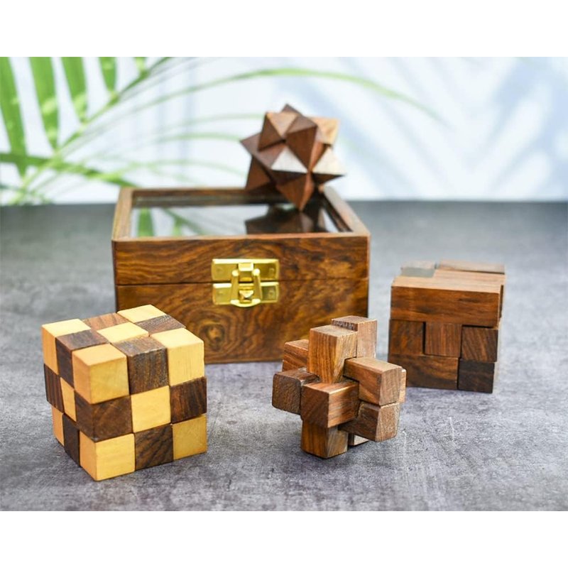 - 【HANDCRAFTED DESIGN】 Made from high-quality wood, the box and puzzles are handcrafted, making them durable and aesthetically pleasing. The natural wood finish adds a rustic, elegant touch, perfect for wooden games and wood puzzles for adults.