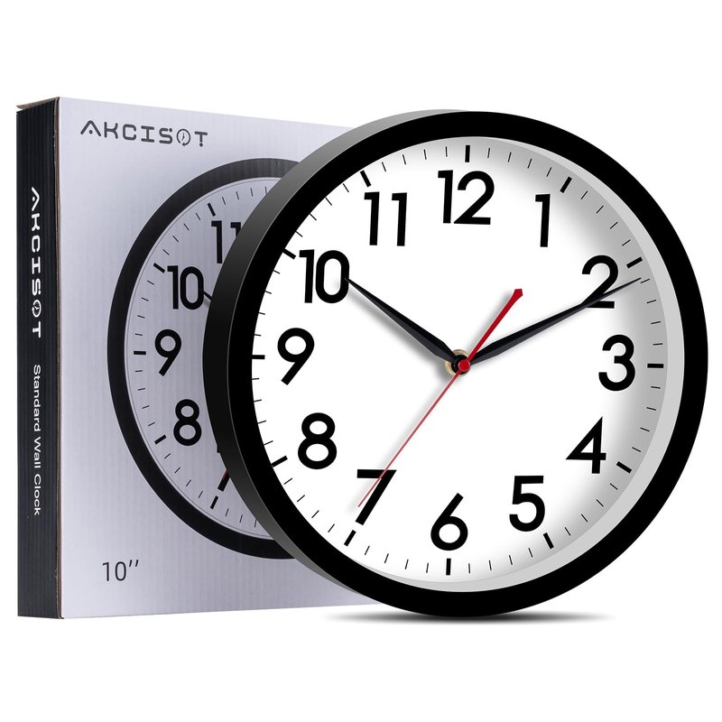 AKCISOT Wall Clock 10 Inch Silent Non-Ticking Modern Clocks Battery Operated - Analog Small Classic for Office, Home, Bathroom, Kitchen, Bedroom, School, Living Room(Black)