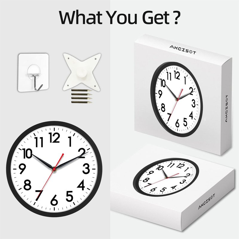 - What You Get: An AKCISOT wall clock and two hooks.