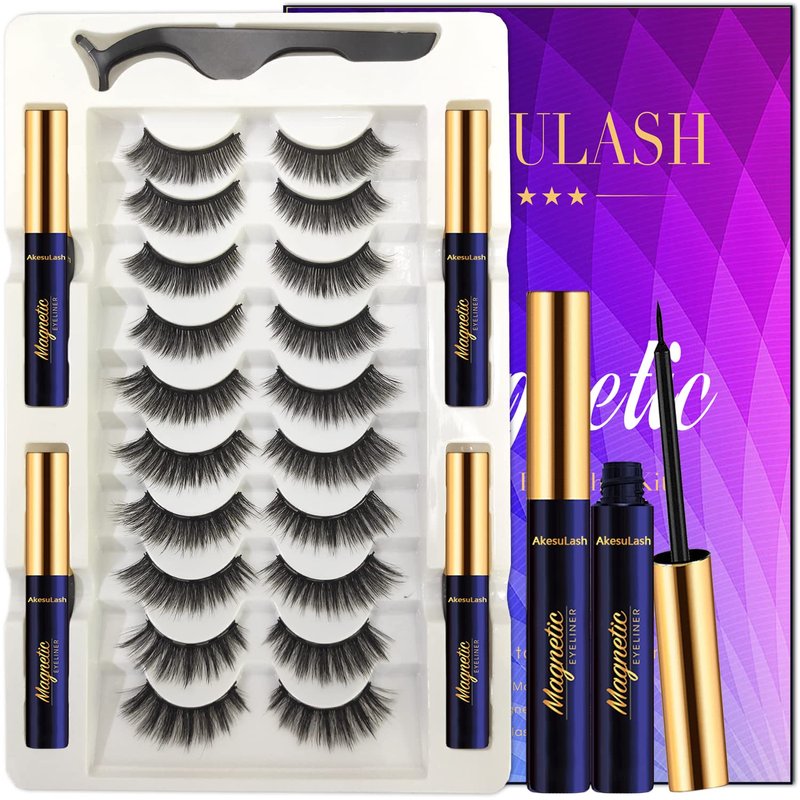 AkesuLash 10 pairs Magnetic Eyelashes with eyeliner kit, you can experience the benefits of gorgeous, thicker lashes. The 3 different styles magnetic eyelashes kit makes it easier for you to have lashes for any occasion. Work. School. Girls night out.