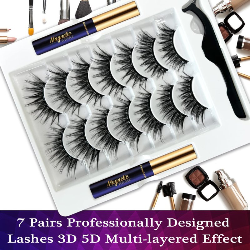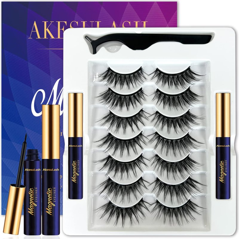 AkesuLash Magnetic Eyelashes with eyeliner kit, you can experience the benefits of gorgeous, thicker lashes. The 7 pairs in 1 styles magnetic eyelashes kit makes it easier for you to have lashes for any occasion. Work. School. Girls night out.