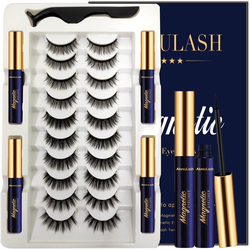 AkesuLash 10 pairs Magnetic Eyelashes with eyeliner kit, you can experience the benefits of gorgeous, thicker lashes. The 3 different styles magnetic eyelashes kit makes it easier for you to have lashes for any occasion. Work. School. Girls night out. SAFE & HEALTH - Made of High Quality safe ingredients and 100% Non-Toxic ingredients and it's latex free,avoid glue allergy. NATURAL EYELASHES - 10 pairs magnetic eyelashes in 3 styles included,makes your eyes look beautiful. EASY to APPLY - Snap on with tweezers - no special skills needed,good for beginner. STRONG MAGNET- Holds well all day but it is also easily are position. HIGH-QUALITY - Long lasting and waterproof magnetic liquid eyeliner. How To Use the Magnetic Eyelashes Kit? Shake the magnetic eyeliner bottle well before use( This is very important ). Apply 2-3 thick layers of magnetic eyeliner to the upper lid, Wait for it to dry for 1 minute. Gently lay lashes on the top of your natural eyelashes. Allow the lash to adhere to the magnetic eyeliner. Adjust the position according to your need. Packaging Magnetic Eye Lashes * 10 pairs Magnetic Liner * 4 tubes Tweezer * 1 pc