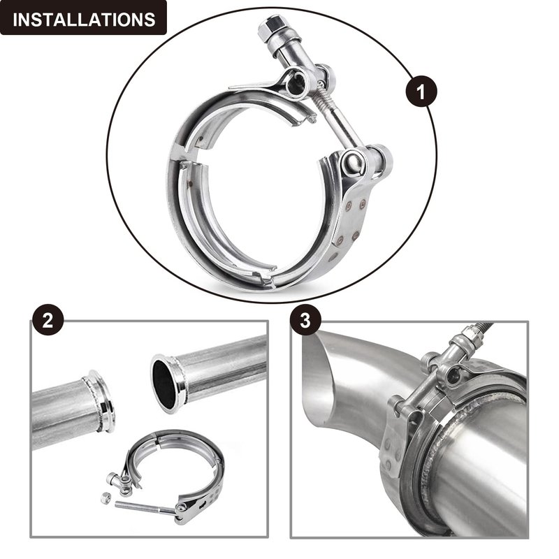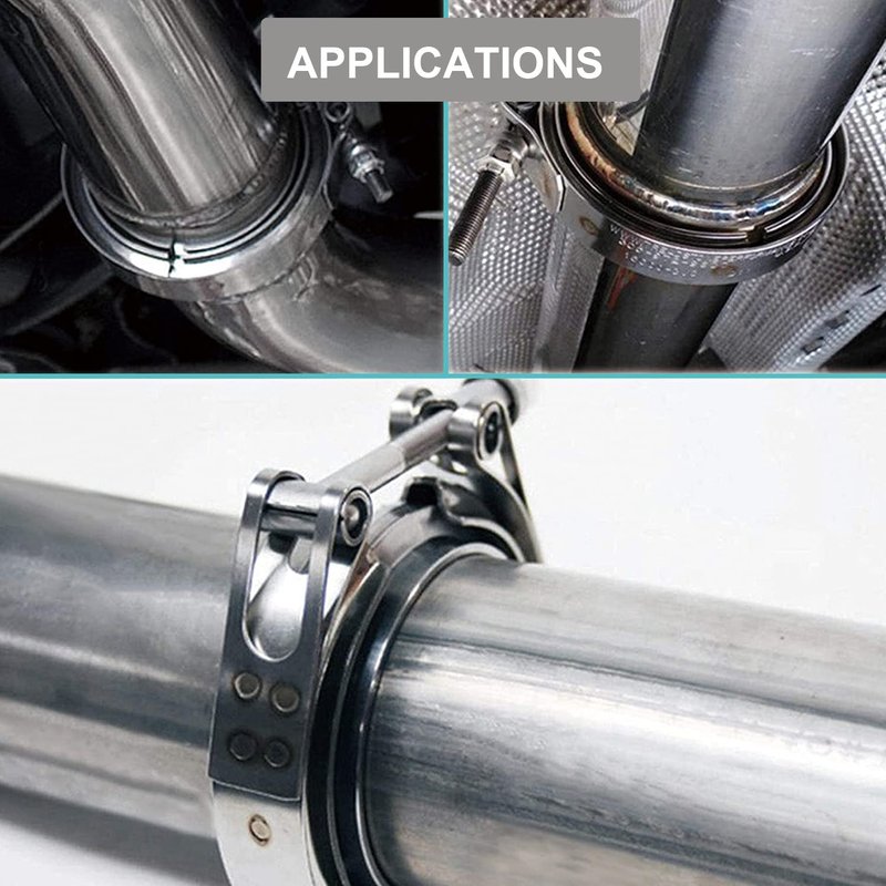 Applications - The V-Band Clamps offer effective fastening solutions in exhaust systems, remove intercooler systems and turbo parts. such as charge piping, intake pipes, diesel engines, turbochargers, and heavy-duty exhaust systems. Etc. V-band kit is ideal for connecting different pipe sections.