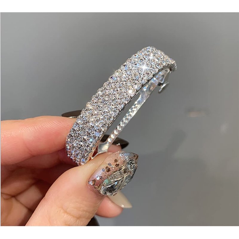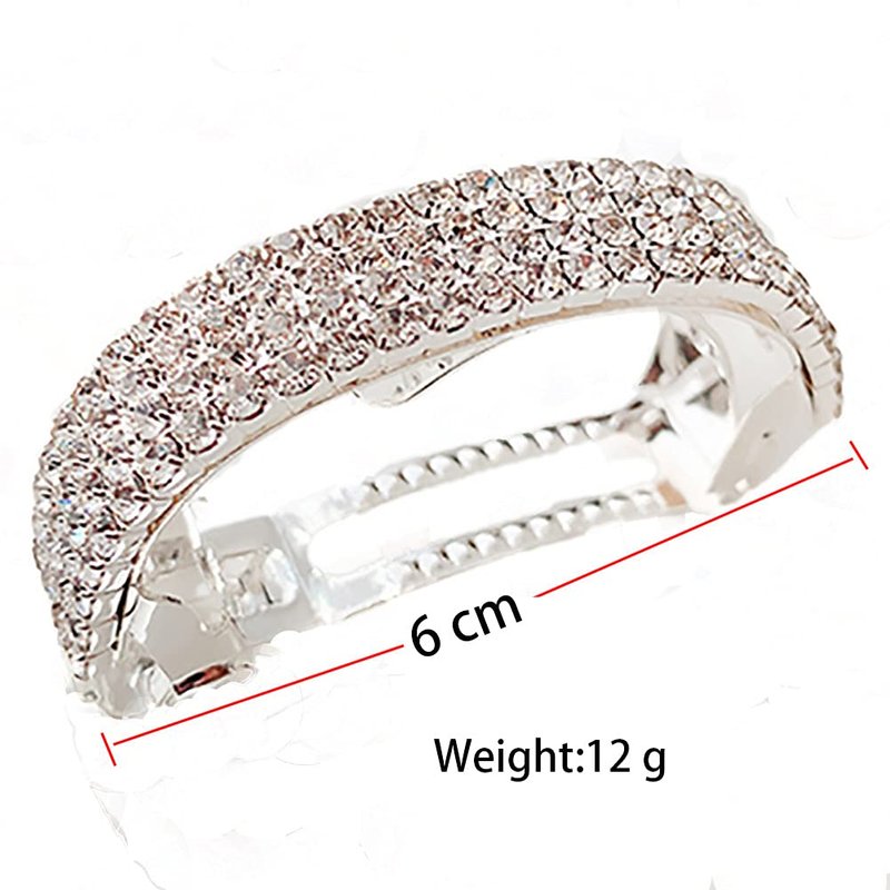 AKOAK 1 Pack Delicate Diamond Set Pony Tail Buckle Diamond Temperament Spring Clamp Arch Gold Girl's Turnaround Alloy Hair Tiara (Silver)