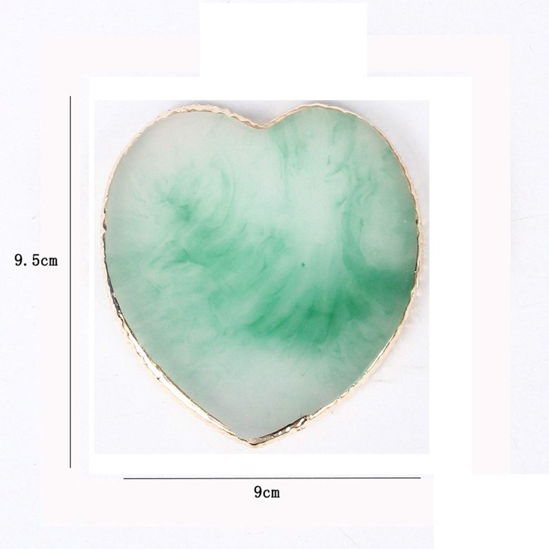 AKOAK 1 Pack Nail Heart Shape Resin Palette Agate Golden Edge Palette Crystal Edge Shooting Prop Palette Works Display Board Tools (Green)