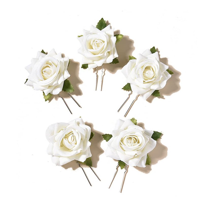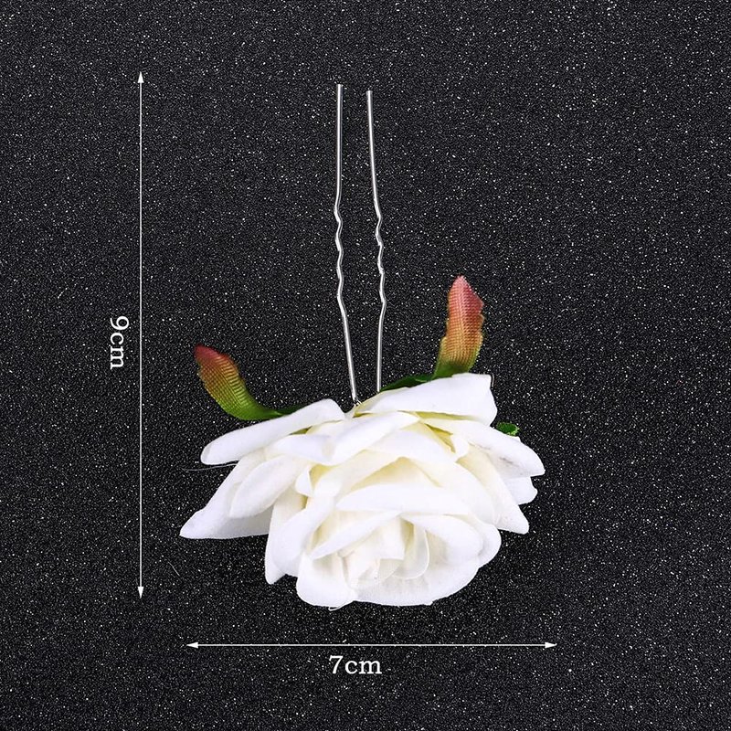 AKOAK 2 Pcs Bride Rose Floral Pin Elegant Red Bridal Hairpin Imitation White Rose U-Shaped Hair Fork Wedding Hair Accessories Fabric (White)