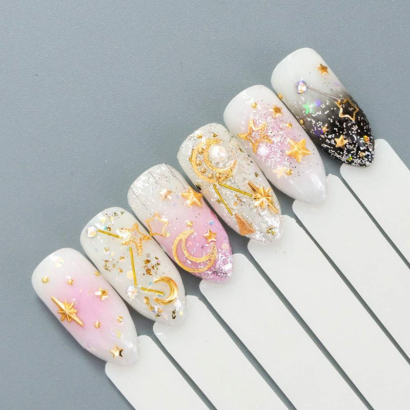 - ❤ Material: alloy, weight: about 9.5 grams, the package includes: 200Pcs stars and moon rivets mixed nail stickers.