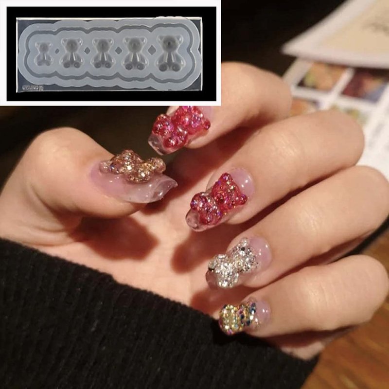 AKOAK 4 Pcs Silicone Nail Carving Mold Candy Bear Jelly Carving Geometric Model Phototherapy Glue Filling Mold DIY Nail Art Tools
