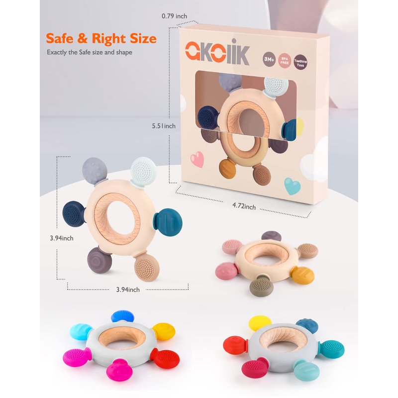 akolik Teething Toys for Babies, Baby Teethers Toy Teething Ring Silicon, Grasping Teething Toy, BPA Free Teething Nursing Accessories for 3+ Months Boy, Girl Toddlers