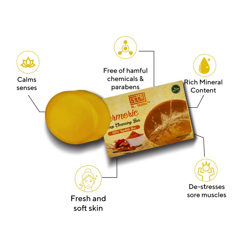AL-TAQWA Turmeric Soap Bar Body and Face, Men/Women, for all Skin Types, Natural Face Wash