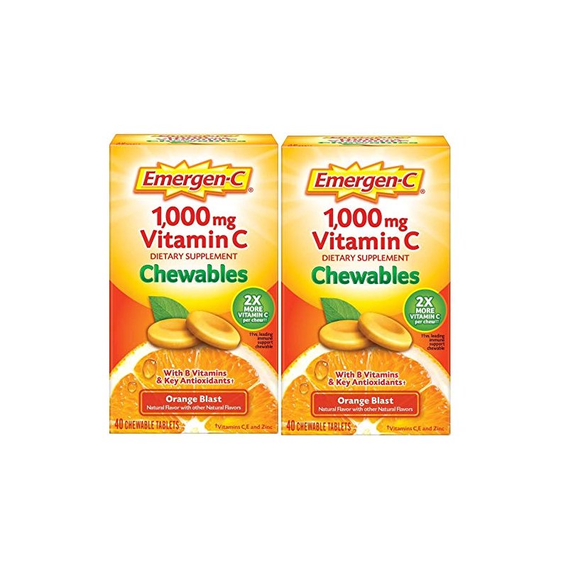 - INCLUDES: 40 chewable tablets per bottle of Emergen-C with Vitamin C in organe blast