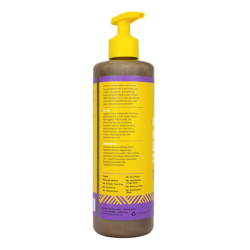 Alaffia Skin Care, Authentic African Black Soap, All in One Body Wash, Face Wash, Shampoo & Shaving Soap with Fair Trade Shea Butter, Wild Lavender, 16 Fl Oz