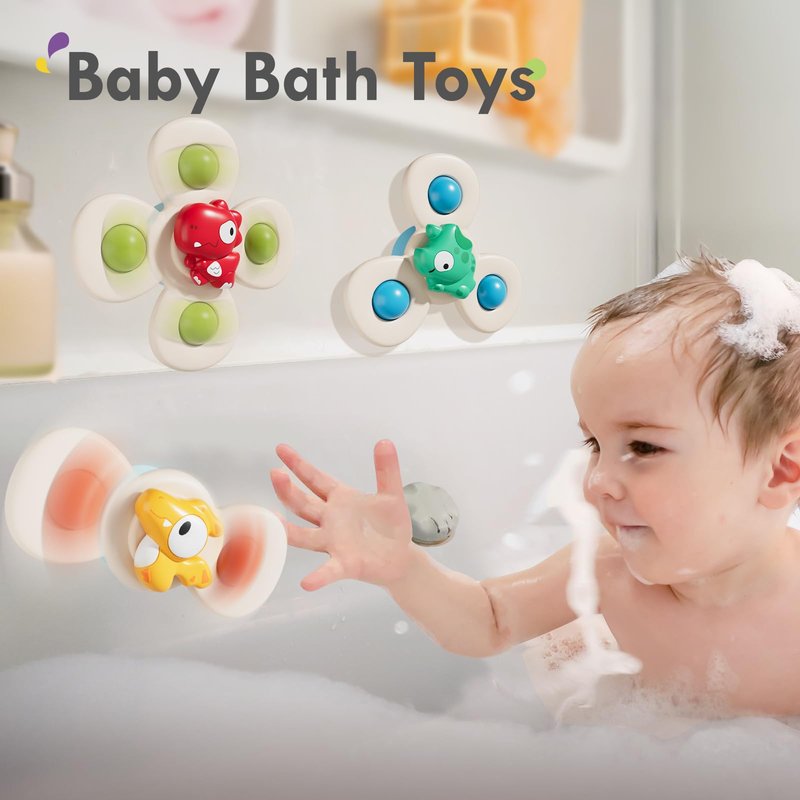 ALASOU 3PCS Suction Cup Spinner Toys for 1 Year Old Boy Girl|Spinning Top Baby 12 18 Months|1 2 Year Old Boy Birthday Gift|Bath Toys for Kids Ages 1-3|Sensory Toys Stocking Stuffers for Toddlers 1-3