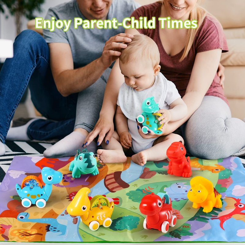 ALASOU 7 PCS Dinosaur Fantastic Creatures Toys with Playmat/Storage Bag|Baby Car Toys for 1 Year Old Boy Birthday Gift|1st Birthday Gifts for 6 12 18 Months|Stocking Stuffers for Toddler 1-3