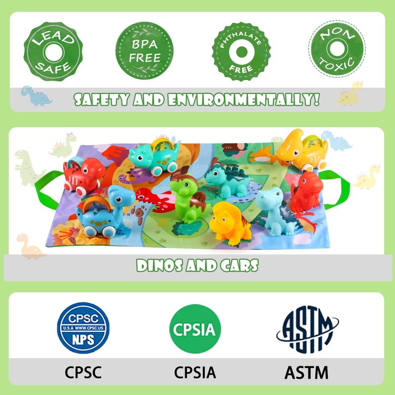 ALASOU Dinosaur Baby Truck Car Toy Sets and Playmat/Storage Bag for Toddler | Baby Toys 12 - 18 Months | Toys for 1 2 Year Old boy| Birthday Gifts for Infant Toddlers