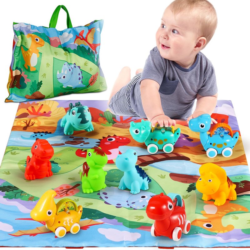 ALASOU 9 PCS Dinosaur Fantastic Creatures Toys with Playmat/Storage Bag|Baby Car Toys for 1 Year Old Boy|1st Birthday Gifts for Toddler Age 1-2|1 Year Old Boy Birthday Gift for Infant 12 18 Months