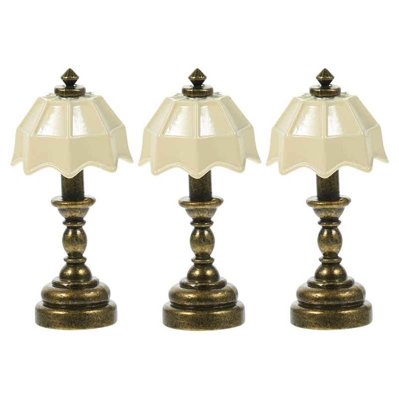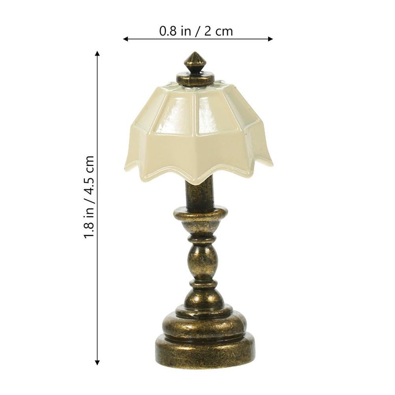 Description This is dolls house mini table lamp model for micro landscape decor, safe and decorative, simple to use. High simulation with exquisite design, could surely attract attention better. The dolls house mini desk light is very lovely, meet your demands for matching with other miniature crafts to decorate dolls house, can also be unique gift choice for your friends. Features -Color:As Shown -Material:Alloy -Size:4.50X2.00X2.00cm/1.77X0.79X0.79in - Made of sturdy materials, the dolls house miniature table lamp is , could be used for long time. - Compact and mini in size, place for mini house, these dolls house miniature table lamp is delicate and unique. - Exquisitely detailed mini table lamp are nice-looking with the exquisite color and high simulation, suitable for dolls house room decor, micro scene decor. - Could be used with other dolls house decorations to achieve wonderful decorative effect, these dolls house table light could bring more fun. - You could send the miniature table lamp model as unique gifts to your friends on daily life or birthday, New Year, Christmas, etc. Package Including 3 x Dollhouse Table Lamps