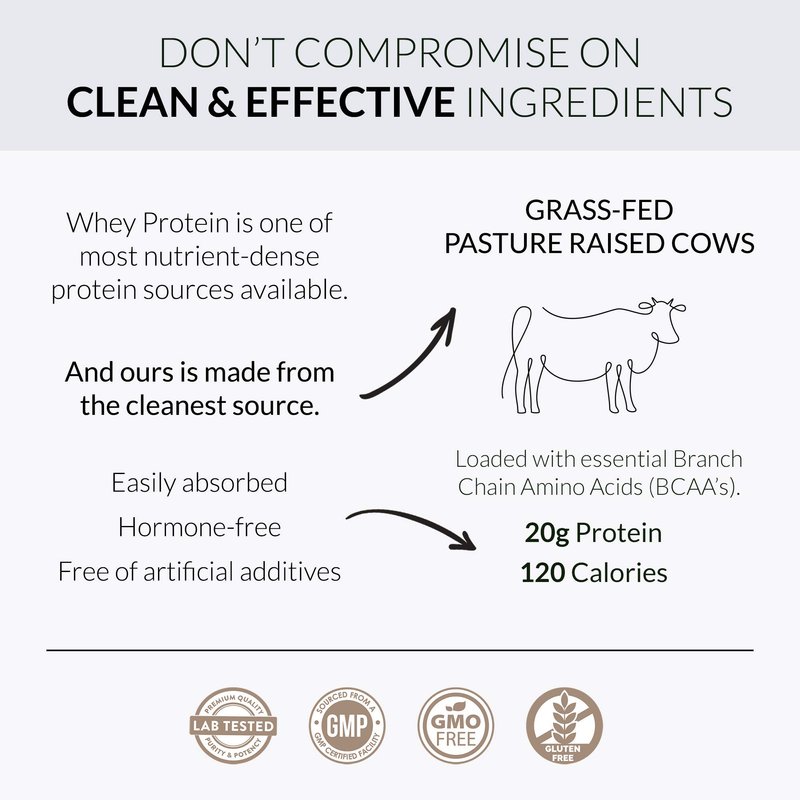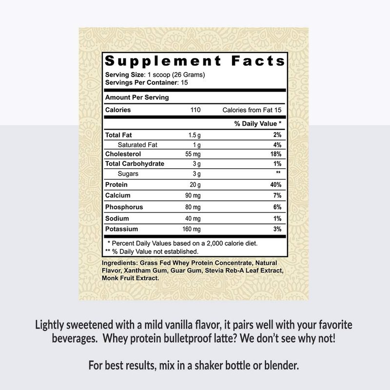 Alaya Naturals - Grass Fed Whey Protein Powder - Vanilla Flavor, All Natural, Hormone Free - 20g Protein per Serving - Non-GMO, rBGH Free, Gluten Free - Great Source of BCAA