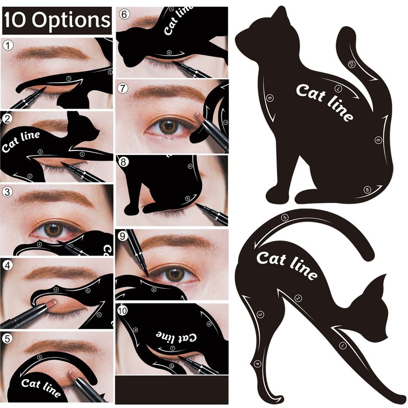 Includes 4 cat shaped eyeliner stencils, 2 of each type.