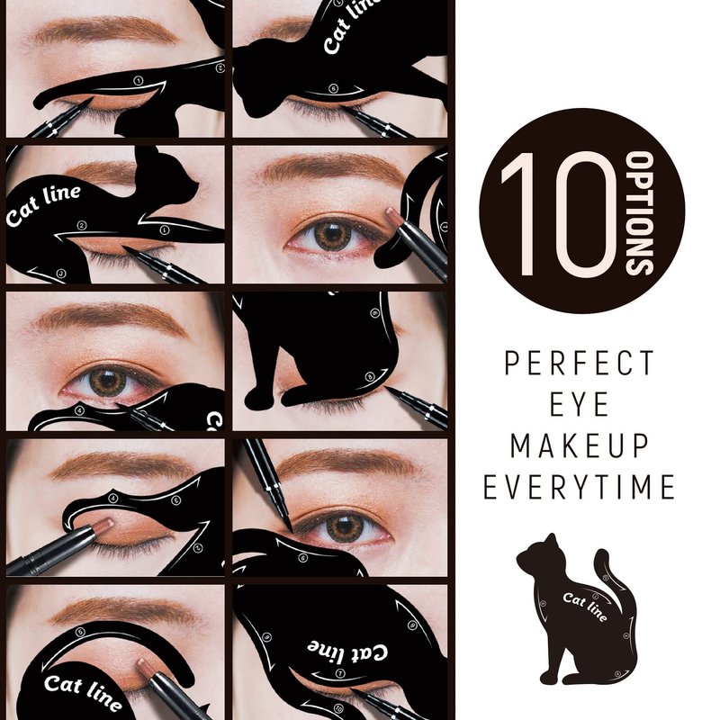 These easy-to-apply eyeliner templates allow you to create a professional eye makeup look; can be used as a stencil to apply eyeshadow or eyeliner.