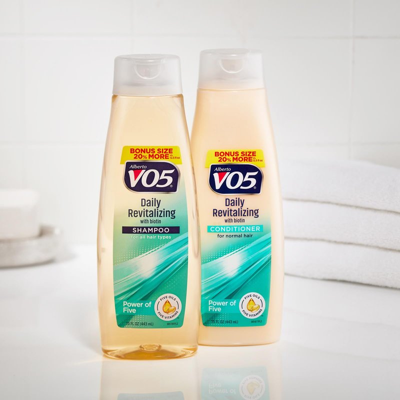 - DAILY REVITALIZING CONDITIONER. Alberto VO5's unique formula, blended with the Power of Five vitamins and 5 natural oils, provides beautiful soft, shiny hair in every wash. That’s the secret of VO5.