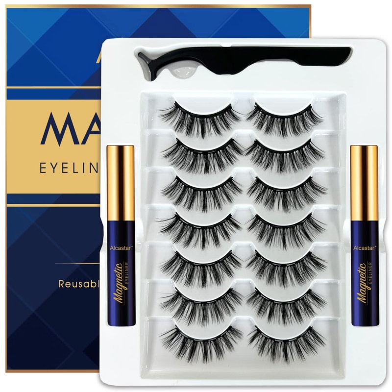 The kit of magnetic eyelashes and eyeliner makes it easier to get a perfect eye make up. You will save a lot of time. The eyelashes are reusable. Put them back to the box after taking them off. You just need to apply the eyeliner and you can put the lashes on again.