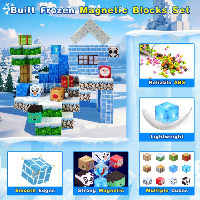 - UNIQUE DESIGN - Our magnetic blocks combine elements of Christmas and the world of ice and snow, with a unique design. These magnetic elements allow the various parts of the toy to easily attract and link to each other, forming a variety of different shapes and structures. During the construction process, children can build various shapes and structures as they please, simple and easy to operate