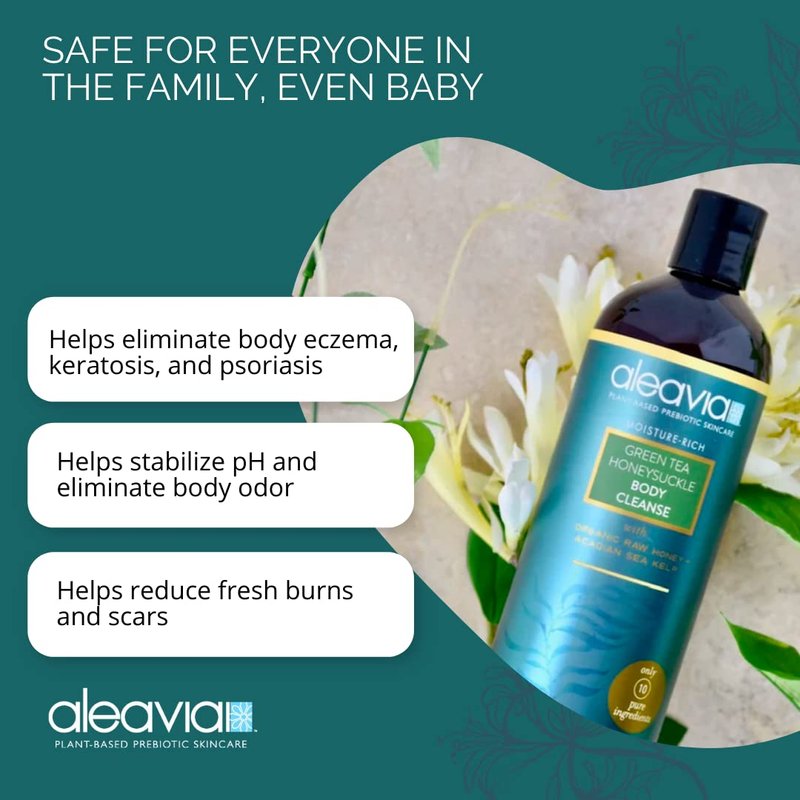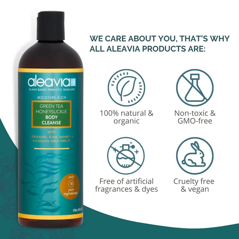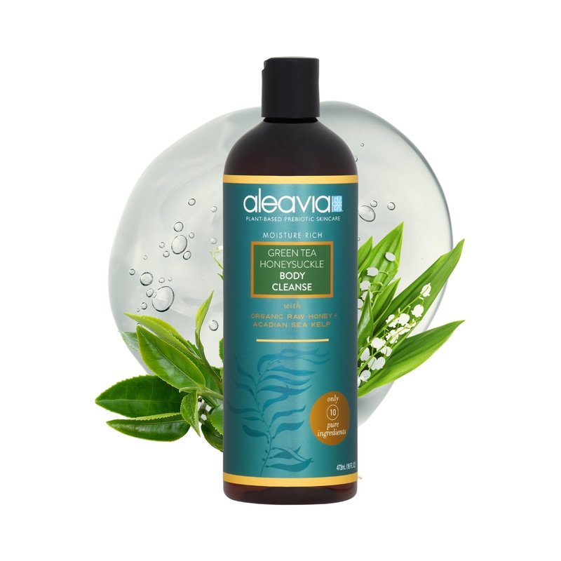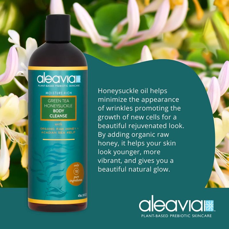 Aleavia Green Tea Honeysuckle Body Cleanse – Organic & All-Natural Prebiotic Body Wash with Raw Honey – 16 Oz.
