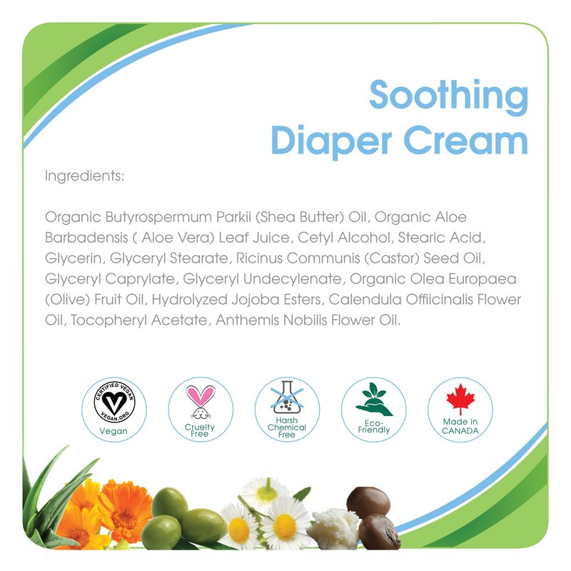 - ✓ HELPS TO TREAT AND PREVENT DIAPER RASHES: The Soothing Diaper Cream is a unique blend Organic Shea Butter, Aloe Vera and Natural Calendula extracts that provides a protective moisture barrier to help prevent skin irritation and redness and that moisturizes and soothes your baby’s bottom at the same time leaving it feeling soft, supple and silky-smooth.