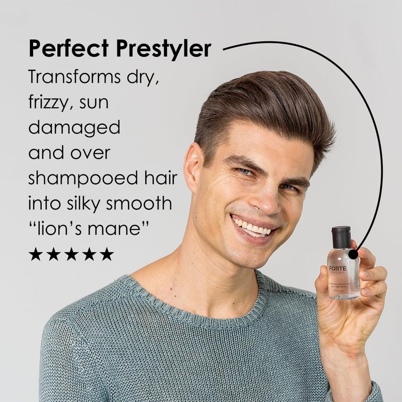 • HYDRATING HAIR SERUM FOR MEN - The Hydrating Argan Oil by Forte Series is a hair serum designed for daily use. Argan oil has been used for centuries to promote shiny, silky hair. If you regularly style your hair using heat styling tools like straightening irons, curling irons, or blow-dryers, this argan oil for hair works as a pre-styler, priming your hair for heat exposure.