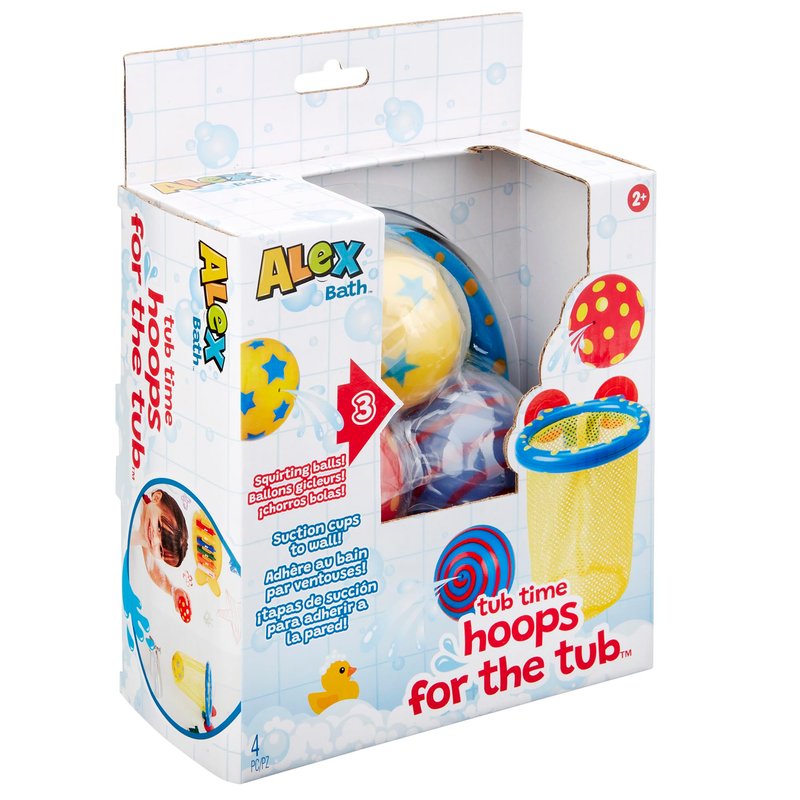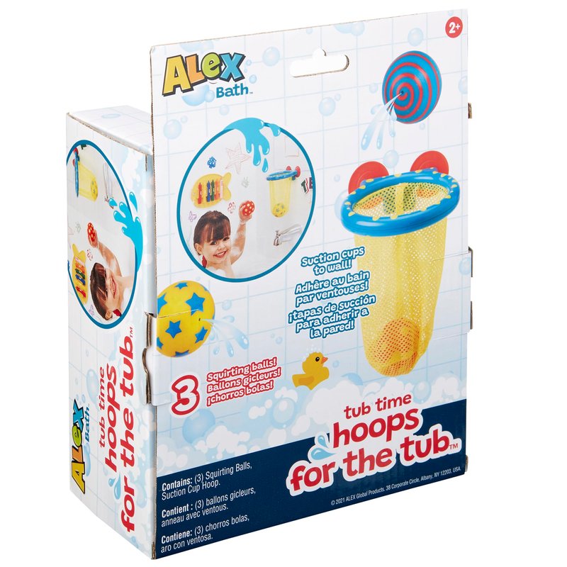 ALEX: Tub Time Hoops - Bath Time Basketball Hoop, 3 Water Squirting Balls, Suction Cup, Closed Net, Active Sport Water Toy, Kids & Toddlers Ages 2+