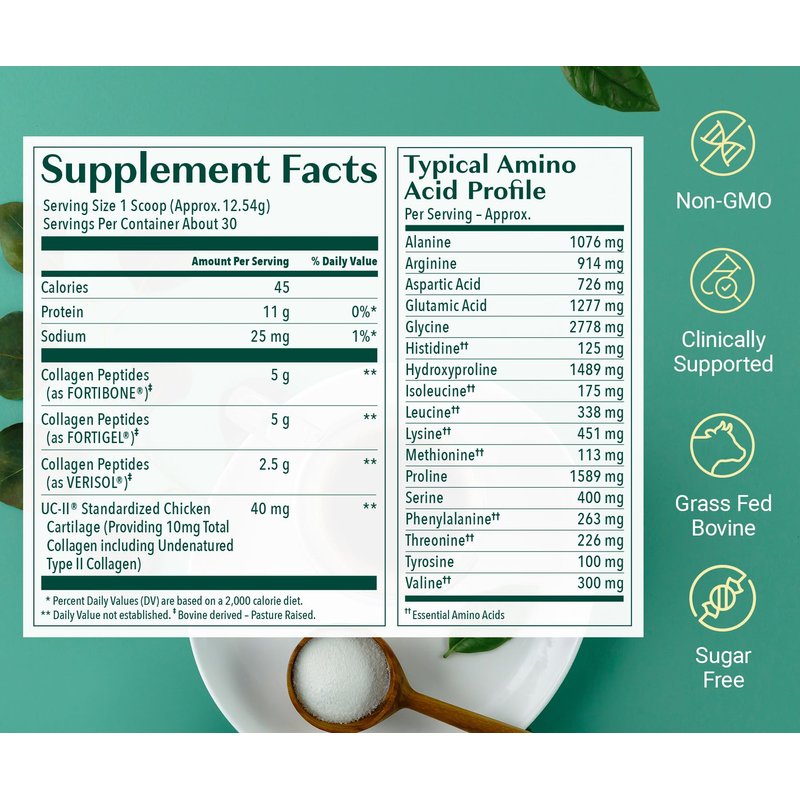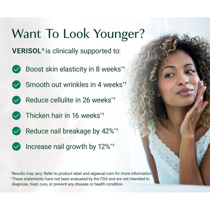 ALGAECAL Collagen: 4 Clinically-Supported Peptides VERISOL®, FORTIGEL®, UC-II®, FORTIBONE®, Anti-Aging Hydrolyzed Collagen Powder, 30 Servings, Made in USA