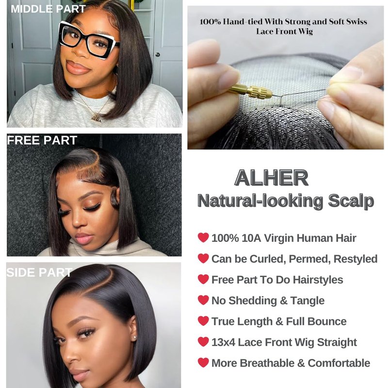 This is why you choose ALHER bob wig human hair small cap lace front wigs human hair pre plucked natural black wig straight glueless wig human hair 180% density 13x4 hd lace front wigs human hair human hair 10 12 14 Inch transparent lace front wigs human hair pre plucked with Baby Hair Invisible Transparent small cap glueless wigs human hair pre plucked for Black Women 1B Color