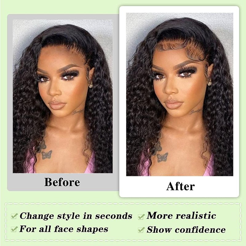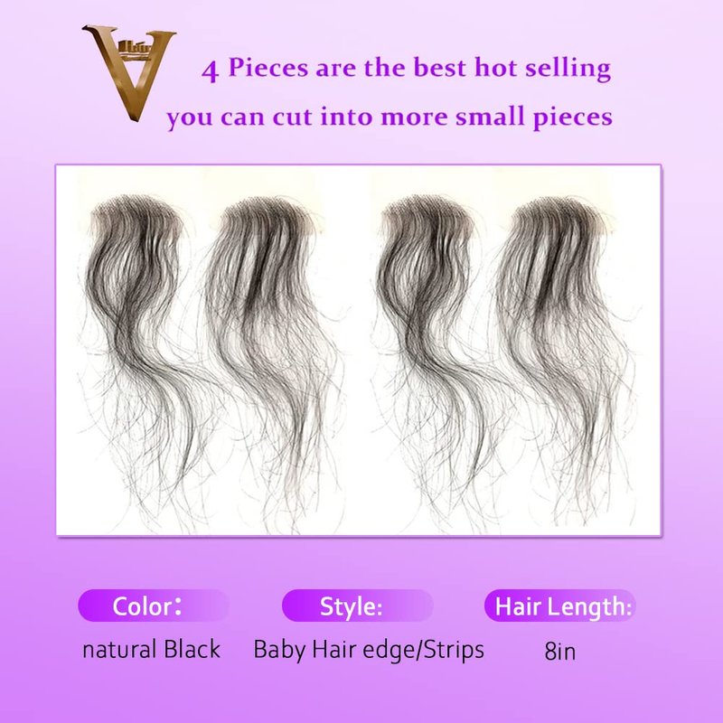 ALI V Real HD Lace Baby Hair Strips for Edges Reusable Lace Hairline Human Hair Edges Hallowe Ultra-thin Swiss HD Lace Edge Stripes for Women Brazilian Virgin Baby Hair Edges Black Color 4pcs