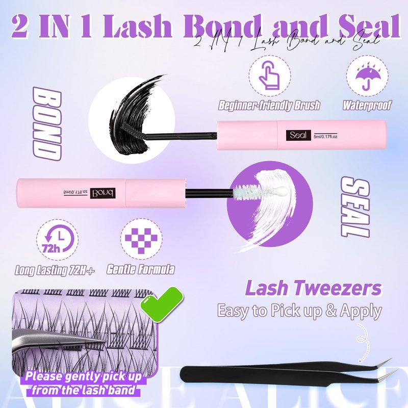 - Complete DIY Kit for Effortless Application: The Natural Lash Extension Kit includes everything you need for a flawless application at home: 270pcs lash clusters, bond and seal lash glue, and precision tweezers. Achieve salon-quality extensions without the salon price.