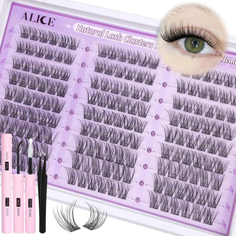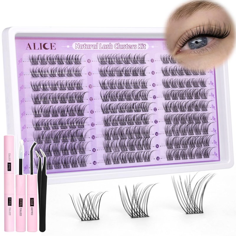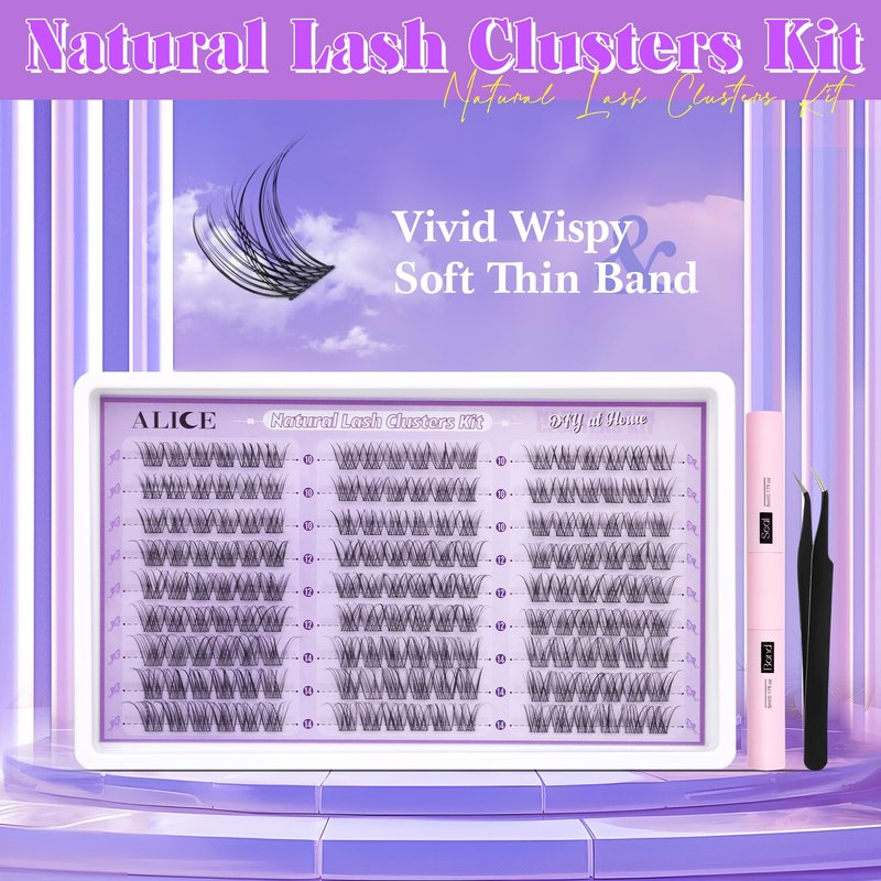ALICE Wispy Lash Clusters Kit, Natural Lash Extension Kit Cluster Eyelash Extension Kit, 162pcs C Curl 10-14mm Eyelash Clusters with Lash Glue Bond and Seal Tweezers