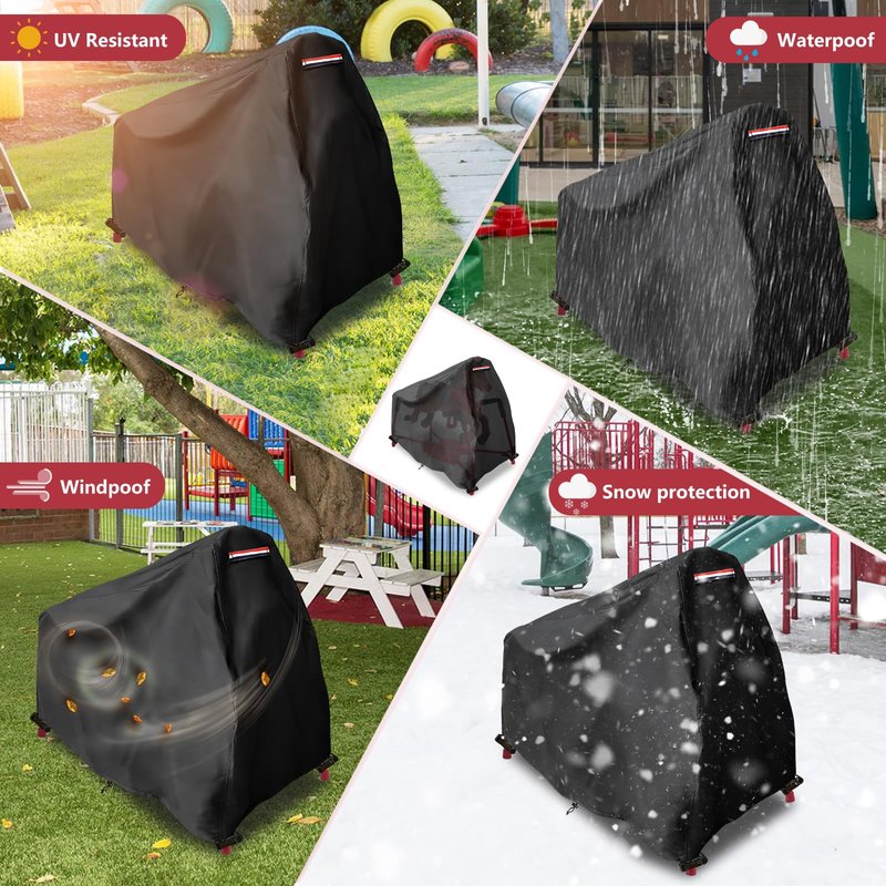 - Easy to use and fasten----The bottom of Alickwang rocking horse cover has designed elastic hem cord and 4 fixed buckles,it can be adjusted to achieve a tight custom fit.Adjustable hem cord with fixed buckles provides the cover a customizable fit with exceptional security in the windy day.And strong padded handles reduces the time and effort to install or remove the cover.