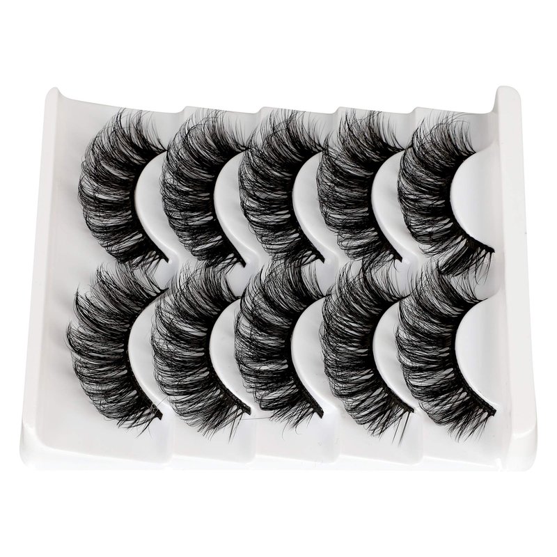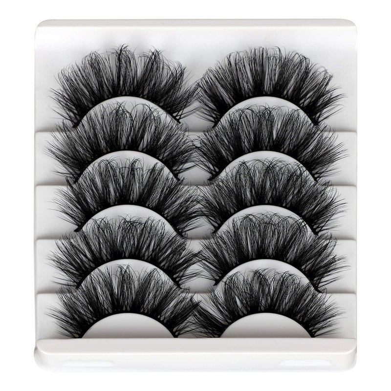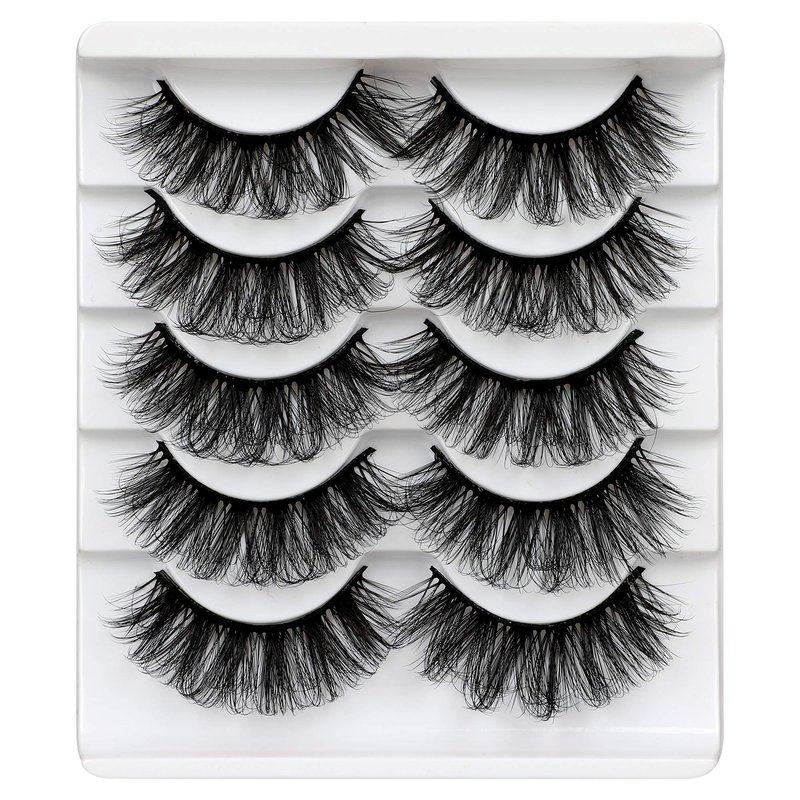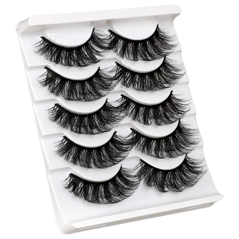 ALICROWN Mink Lashes Faux Wispy Natural Volume Lashes Pack 5D Fluffy Crossed False Eyelashes Full Handmade 5 Pairs Lashes