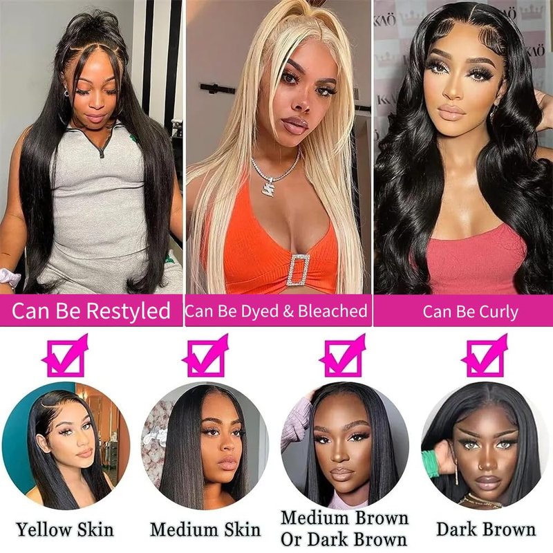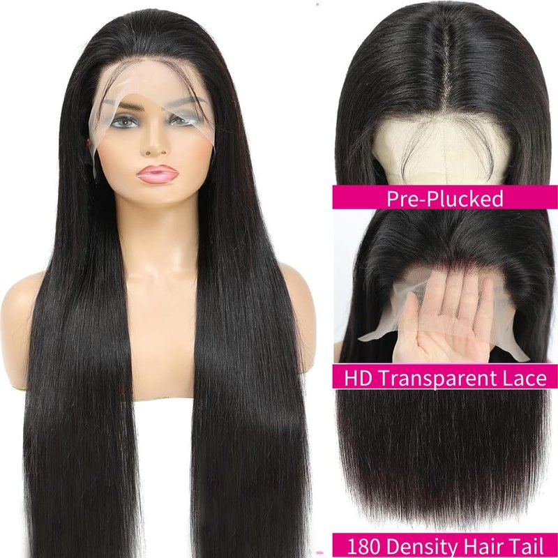- Wigs Human Hair Quality: Straight lace front wigs human hair 180% density. Hd transparent lace frontal human hair wigs for women with baby hair glueless wigs human hair pre plucked natural black. It can be straightened, curled, bleached, dyed, permed, durable, reusable and styled as your own hair.