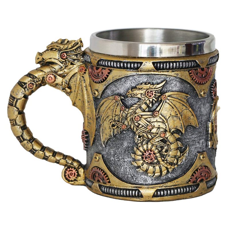 - STEAMPUNK DRAGON MUG - This Renaissance steampunk mug is 4.3" tall, 5.7" long and can hold up to 14 ounces of your favorite beverage. Nice cups to use during gaming nights or a themed party. It will also be a great decor for your home as well as a functional mug for your day to day use!