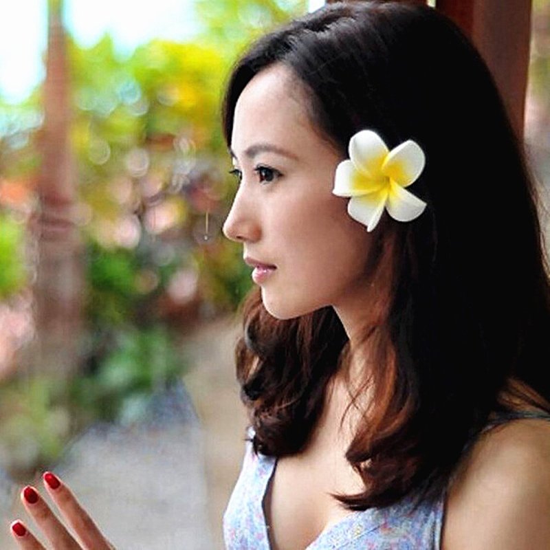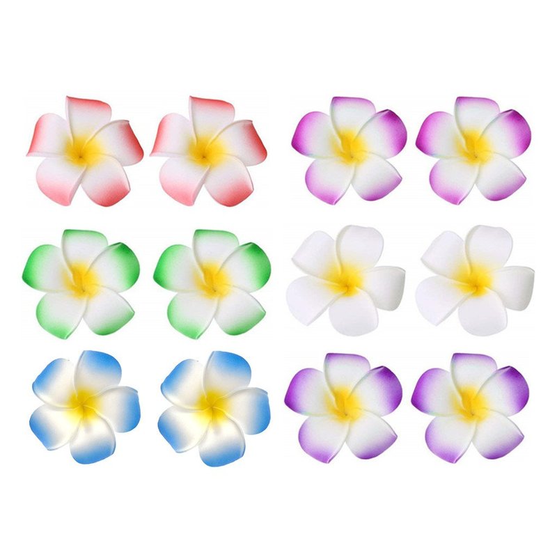 ALIMITOPIA Hawaiian Plumeria Hair Clip Foam Artificial Tropical Flower Hairpin Barrette Hair Accessories for Luau Beach Party(Plumeria Flower;12pcs;Medium Size)
