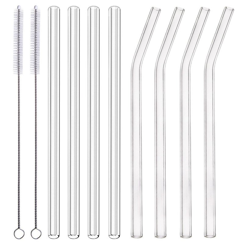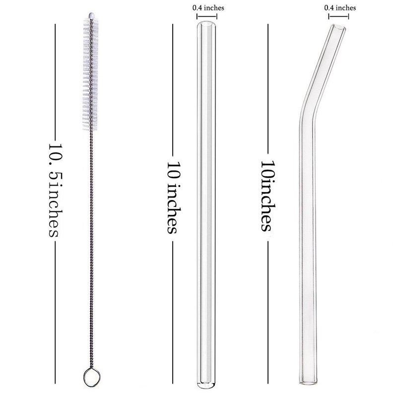 - Includes 8 pcs 10” long, 10 mm wide clear galss straws, 4 bent straws and 4 straight straws, 2 pcs 10.5" cleaning brush can clean the whole straw thoughly