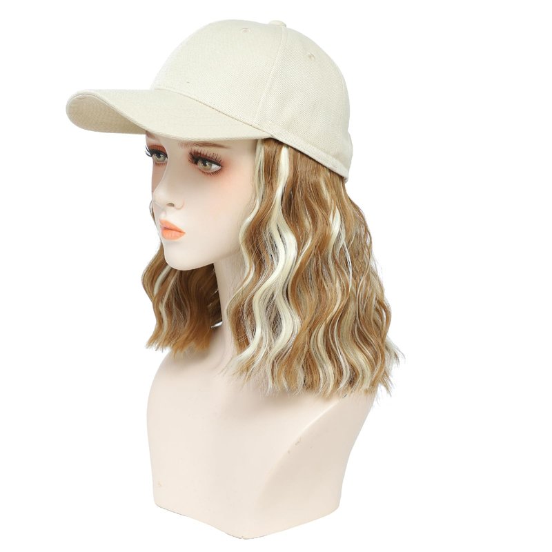 Hat With Hair ,bob wigs, hats with Natural Wave Hair Extensions attached for women, Easy Wear hair style, especially suitable for a bad hair day/lazy days